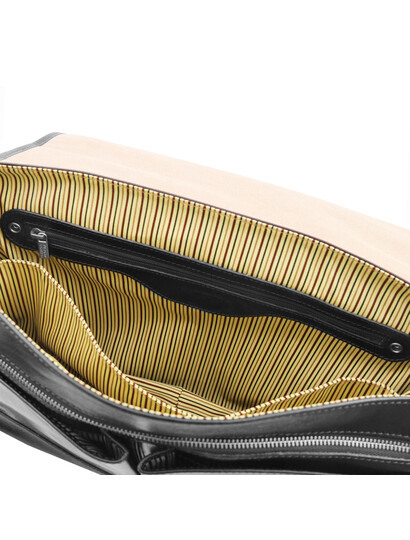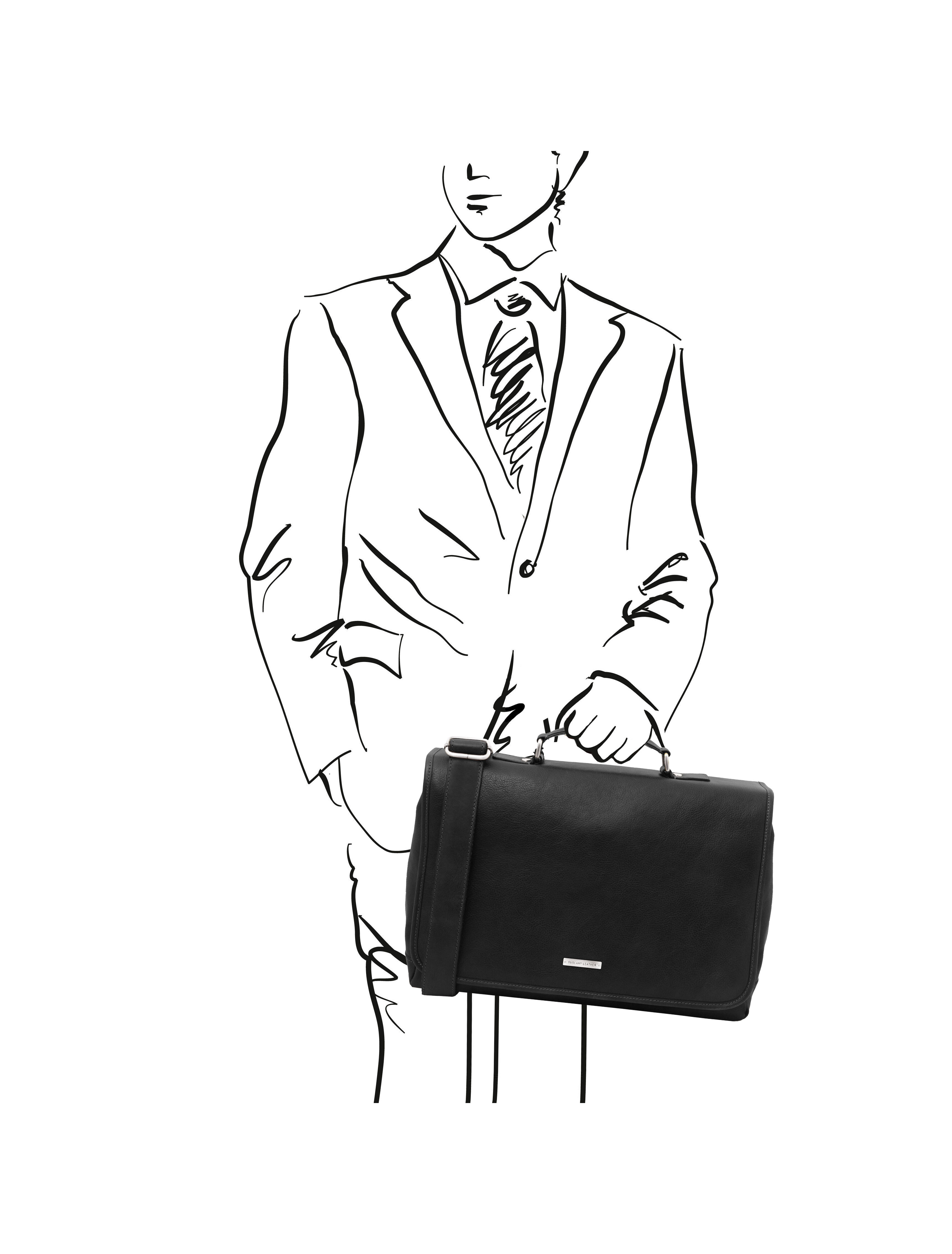 Servieta barbati din piele naturala Tuscany Leather, neagra, Mantova adauga tinutei sofisticare si rafinament atunci cand prima impresie conteaza.