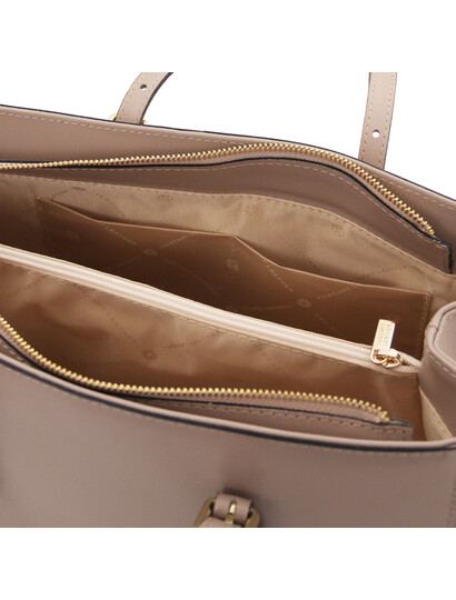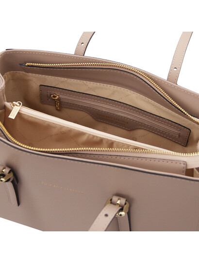 Descoperă eleganța discretă a genții TL Bag din piele, de umăr, în nuanța sofisticată Taupe Deschis. Realizată din piele naturală de calitate superioară, geanta îmbină perfect stilul modern cu funcționalitatea de zi cu zi. Interiorul bine compartimentat îți permite să îți organizezi cu ușurință portofelul, telefonul, cheile și accesoriile esențiale. Bareta de umăr reglabilă asigură confort sporit la purtare, fie că ești la birou, la cumpărături sau la o ieșire în oraș. Designul minimalist, completat de detalii metalice rafinate, transformă această geantă într-un accesoriu versatil, ușor de asortat la orice ținută. Alege TL Bag pentru un look feminin, stilat și mereu actual.