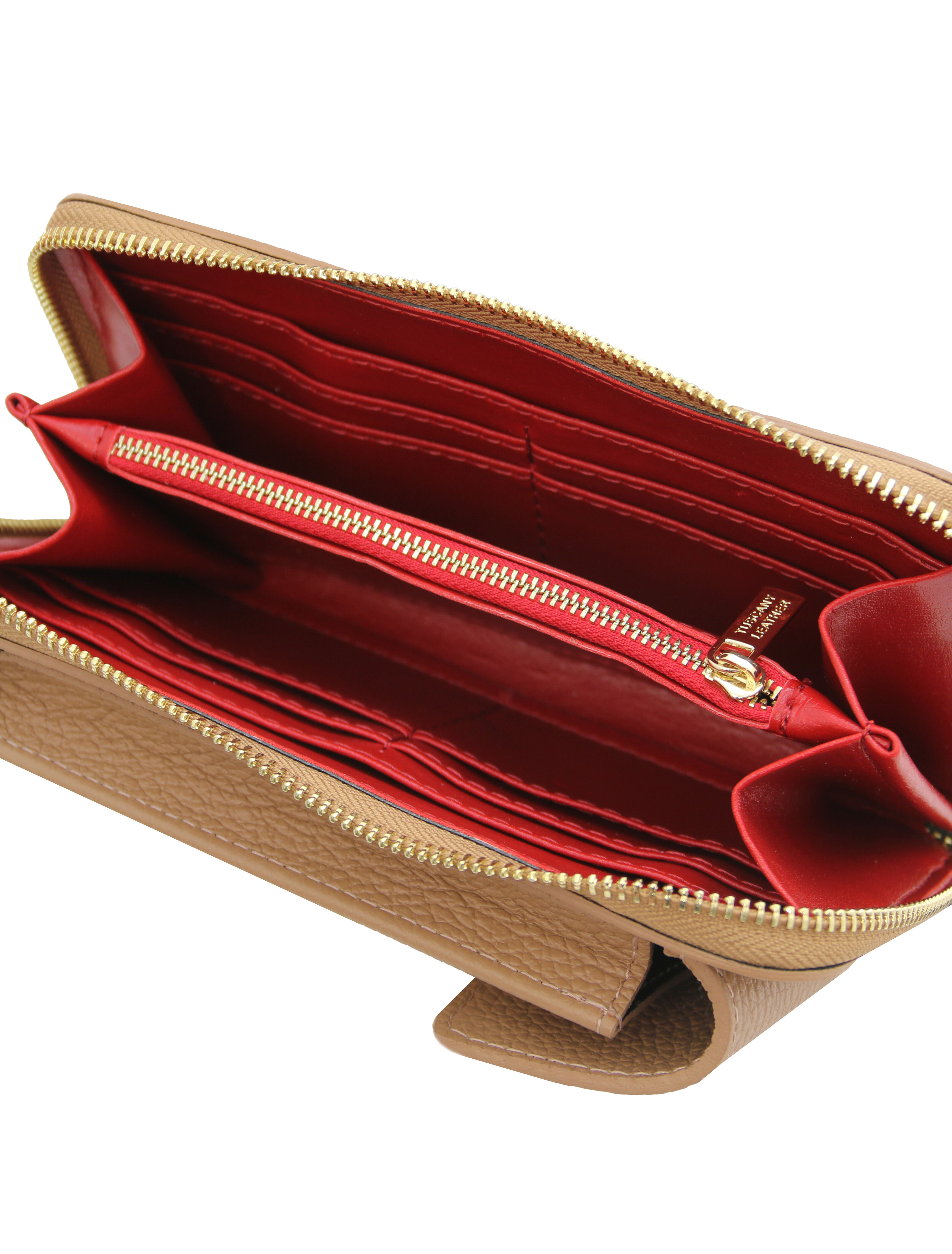 Portofel din piele cu fermoar pe tot conturul Financier Exclus...