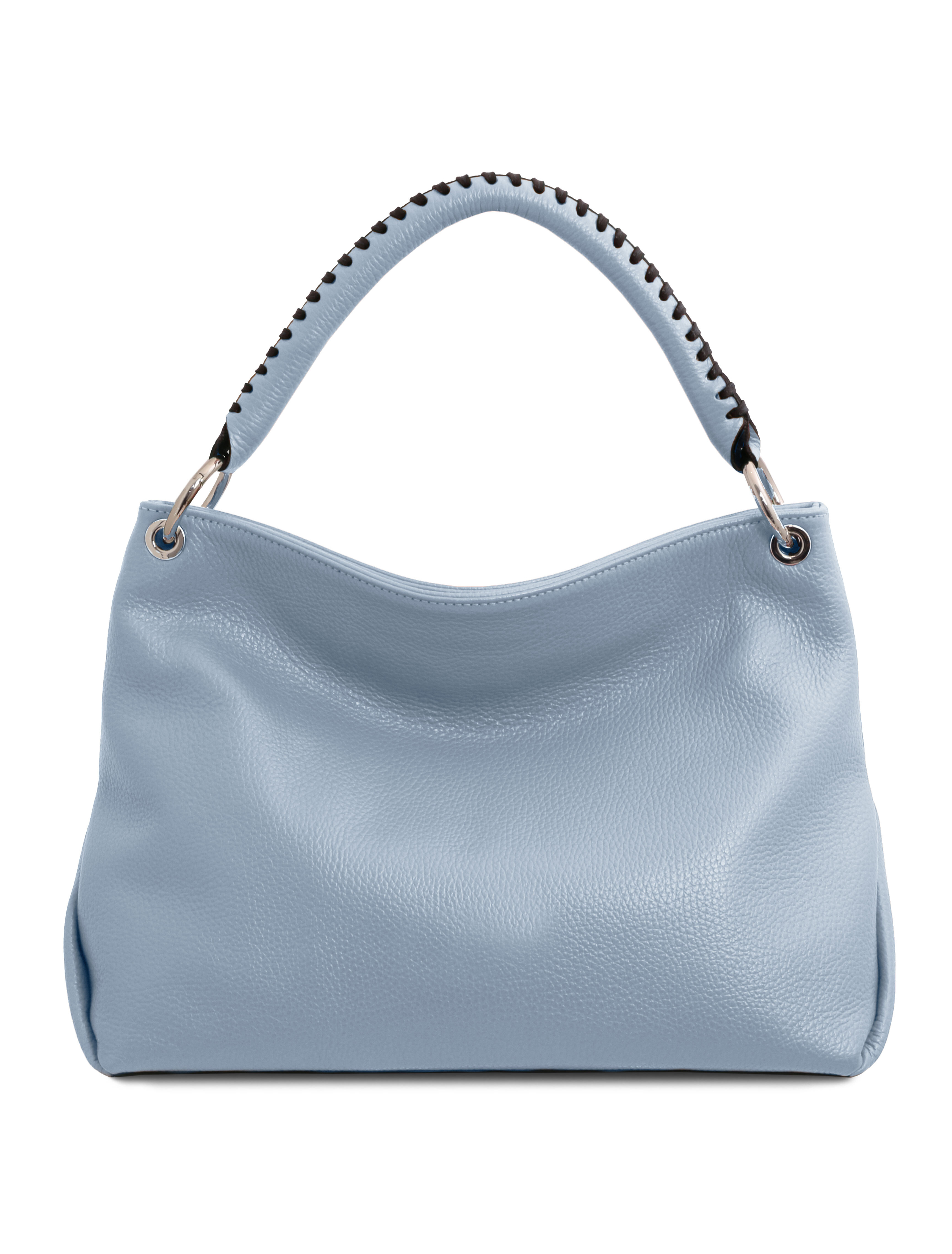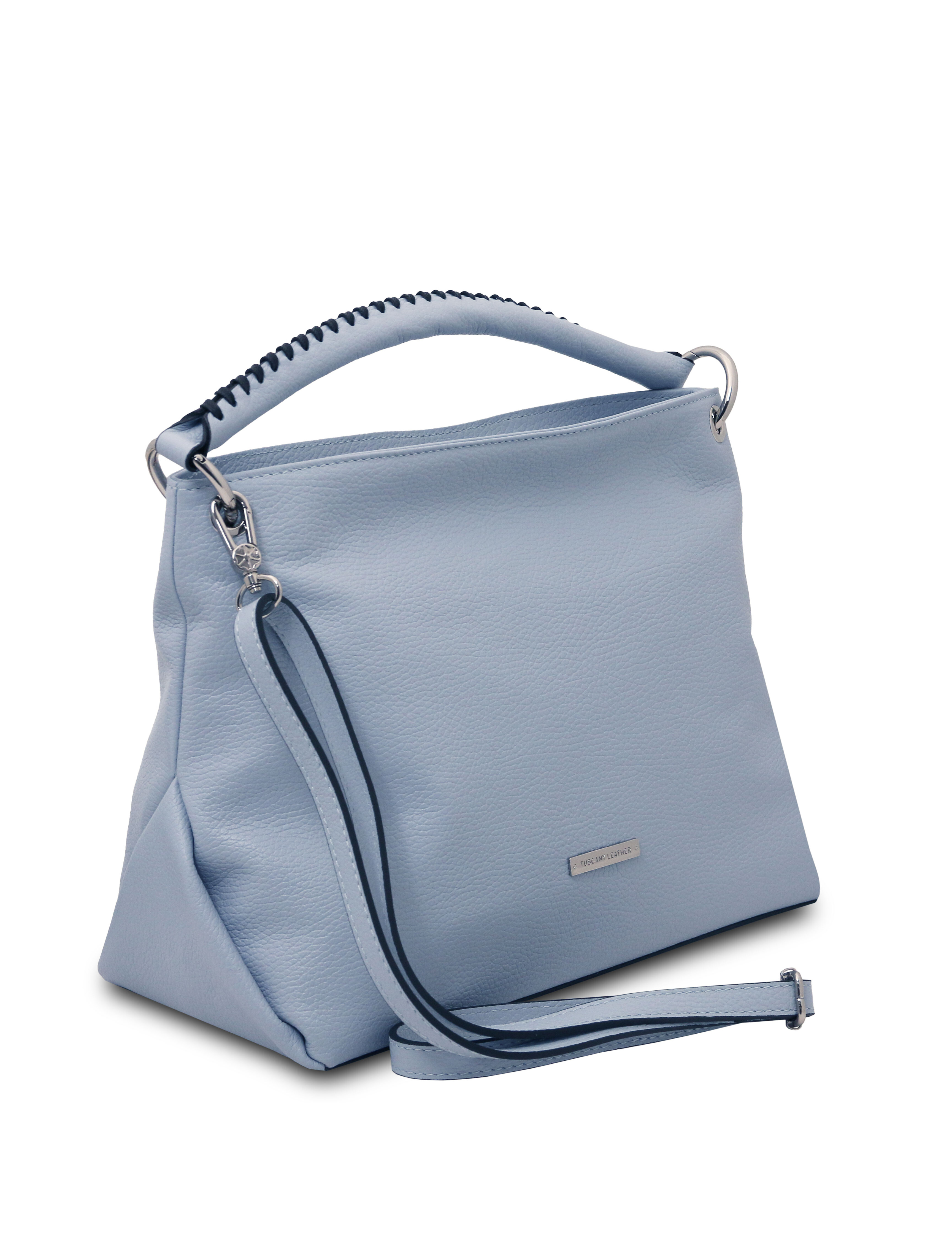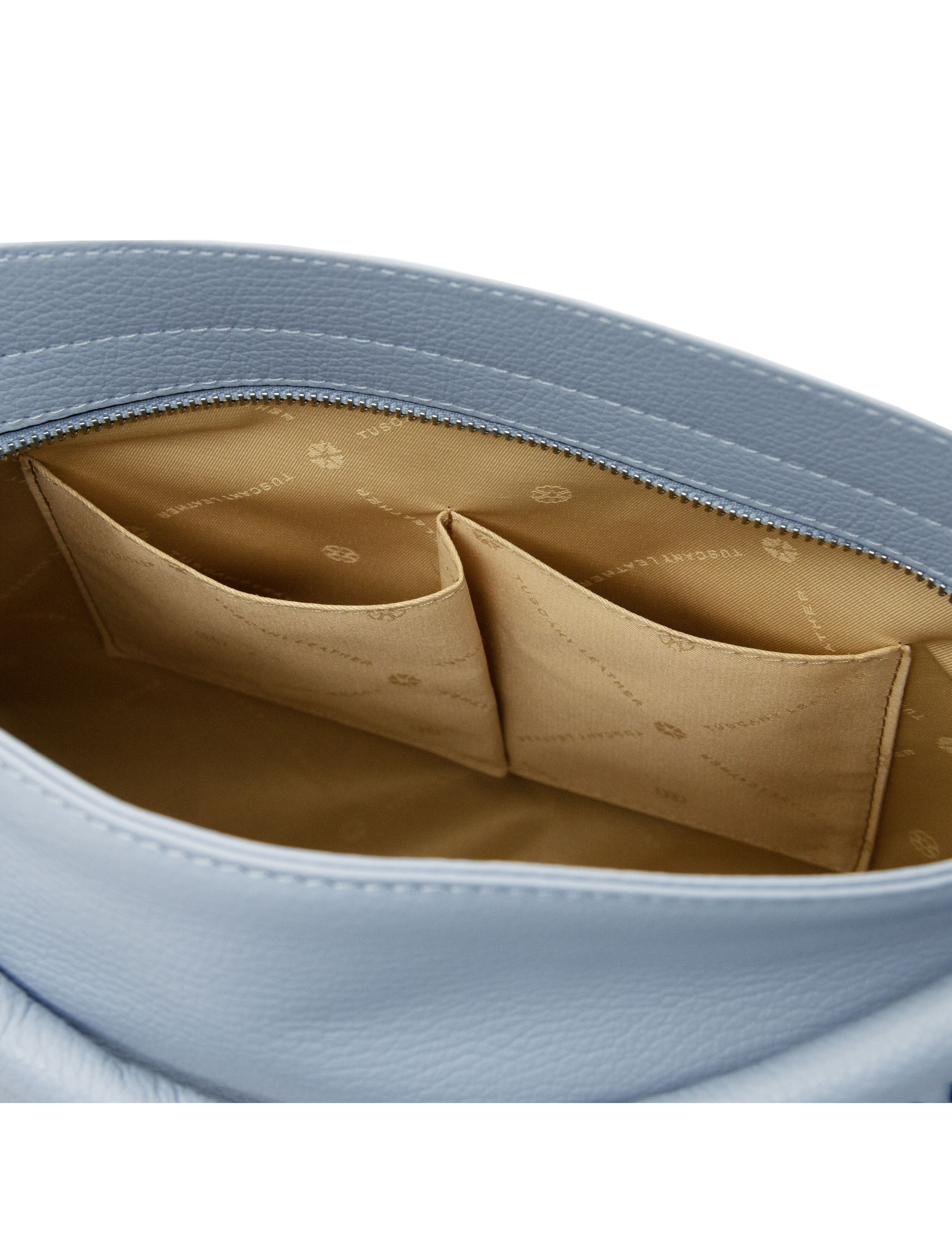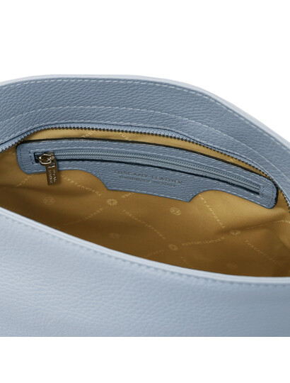 Descoperă geanta de umăr TL Bag din piele moale, în nuanța rafinată de albastru deschis, perfectă pentru ținute moderne și feminine. Confecționată din piele naturală de calitate superioară, geanta oferă un aspect elegant și o textură plăcută la atingere. Interiorul bine organizat îți permite să îți păstrezi telefonul, portofelul și accesoriile esențiale în siguranță pe tot parcursul zilei. Bareta de umăr reglabilă asigură confort sporit la purtare, fie că ești la birou, la cumpărături sau în oraș cu prietenii. Designul minimalist, dar sofisticat, transformă această geantă într-un accesoriu versatil, ușor de asortat atât cu ținute casual, cât și cu outfituri elegante.
