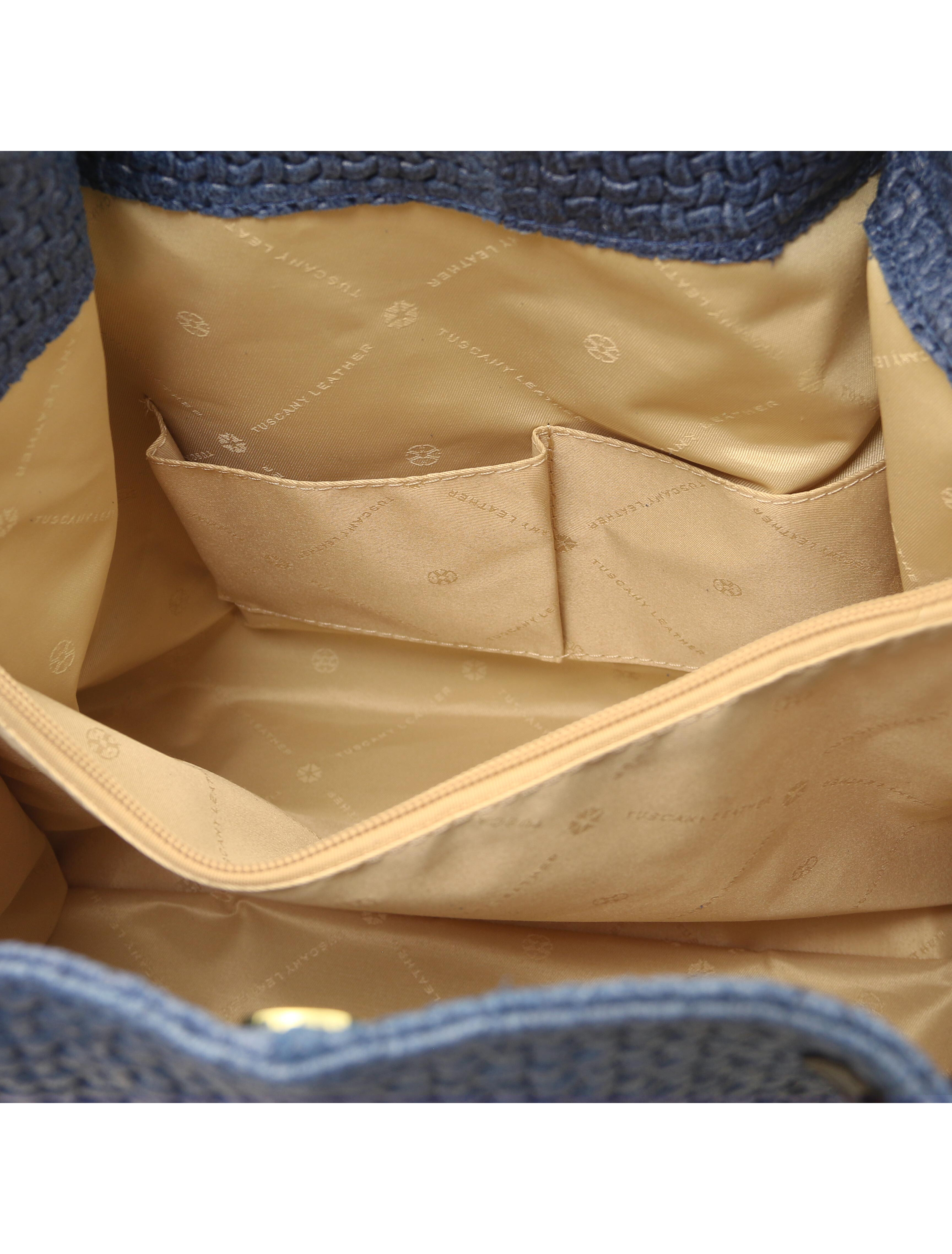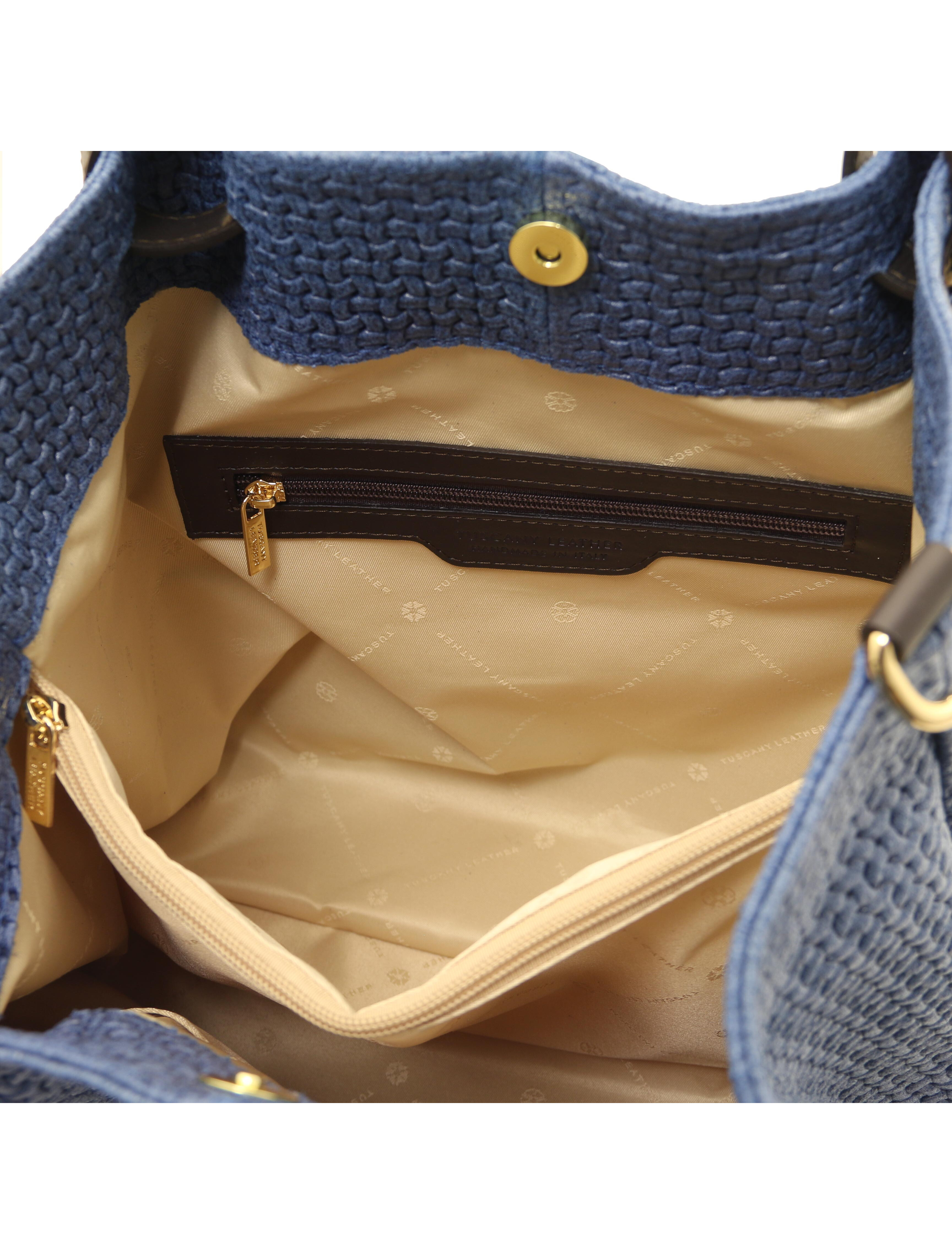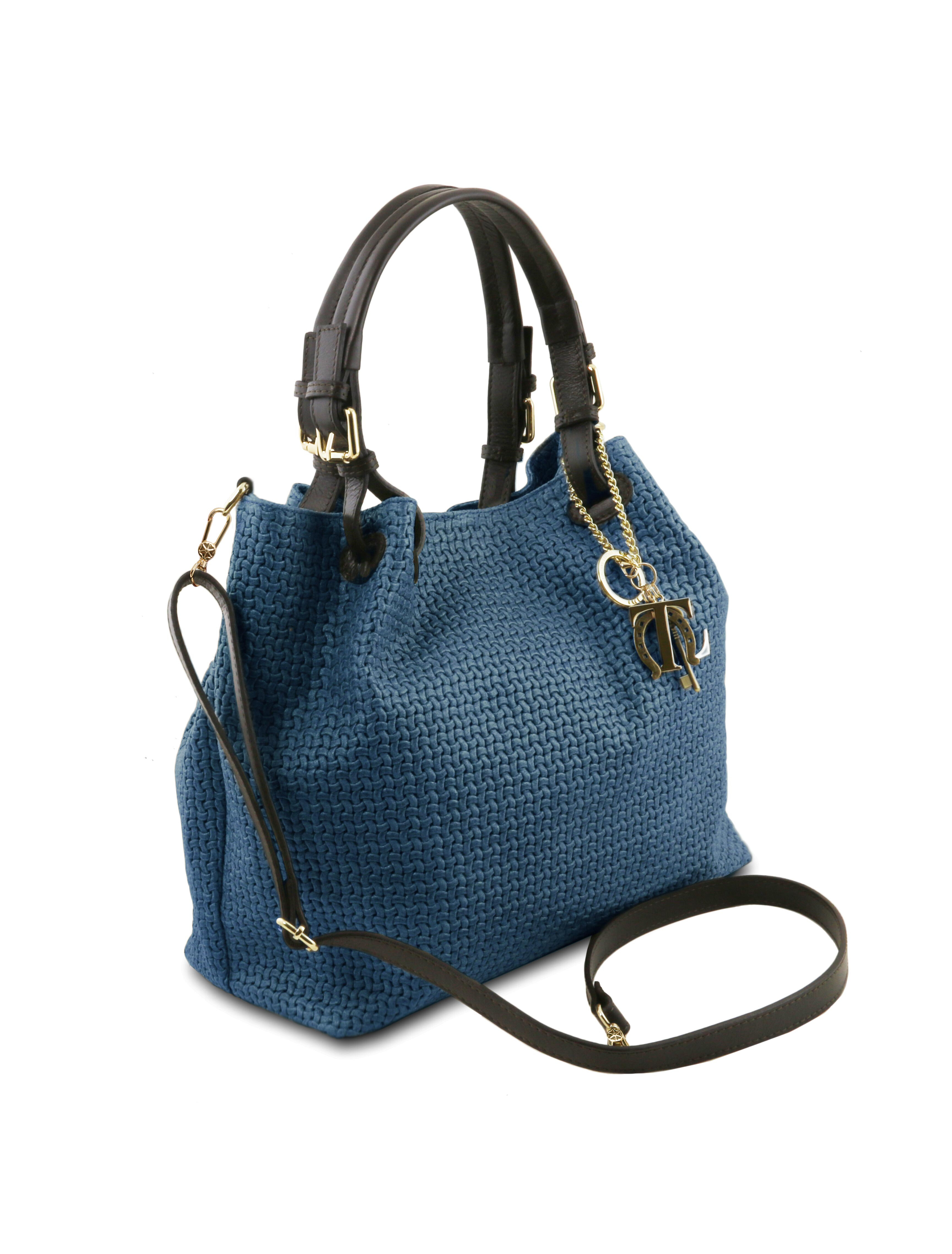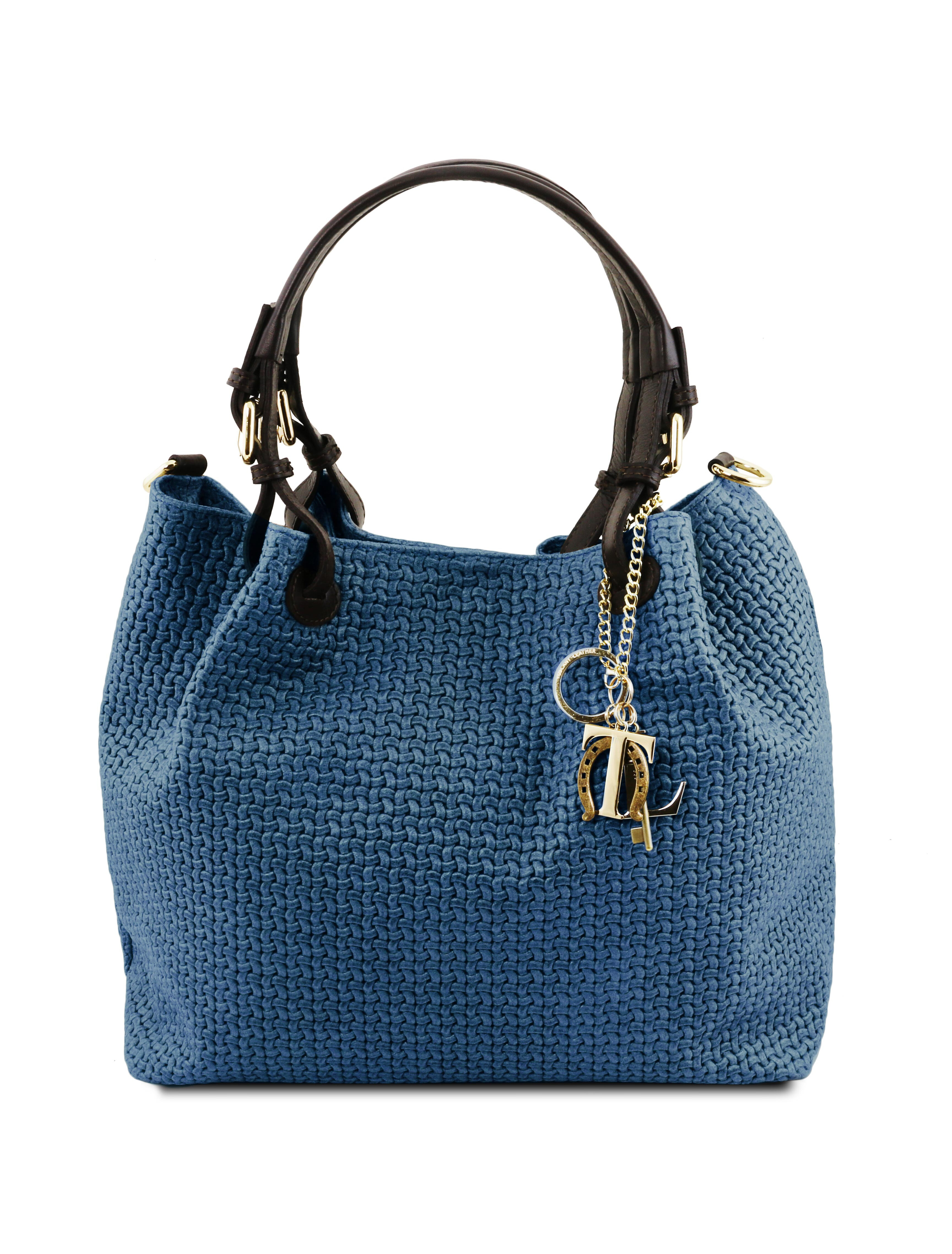 TL KeyLuck Woven printed leather shopping bag Denim