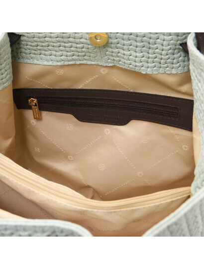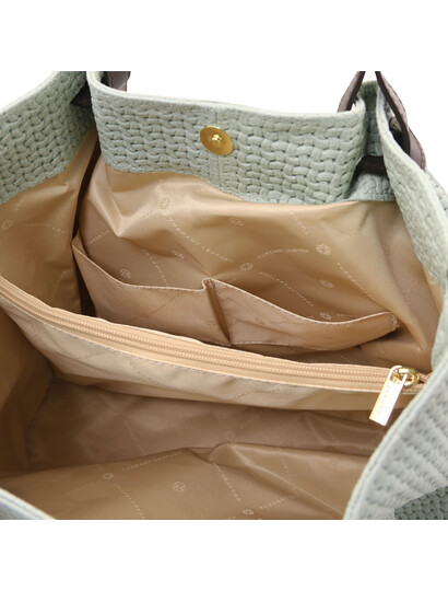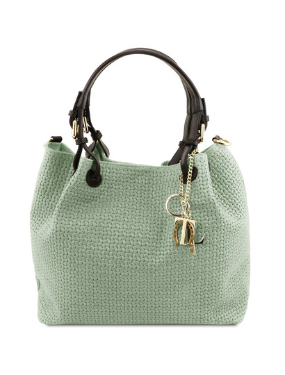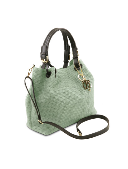 TL KeyLuck Woven printed leather shopping bag Mint Green
