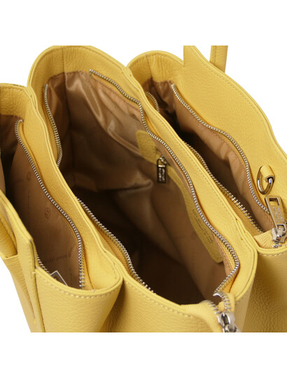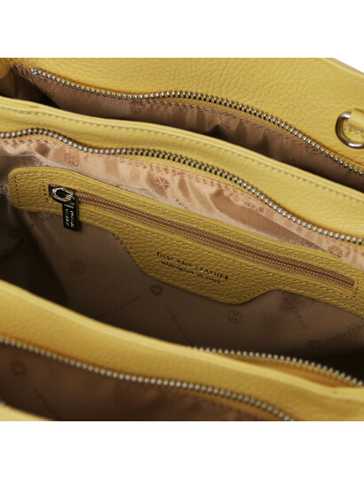 Descoperă geanta din piele Tulipan galben pastel, un accesoriu delicat care aduce lumină oricărei ținute. Confecționată din piele naturală de calitate, geanta îmbină designul minimalist cu detalii atent finisate, pentru un look modern și feminin. Culoarea galben pastel oferă o notă caldă și optimistă, perfectă pentru zilele însorite, dar și pentru a anima outfiturile în tonuri neutre. Interiorul bine organizat îți permite să îți păstrezi telefonul, portofelul și esențialele zilnice în siguranță. Bareta confortabilă asigură purtare ușoară pe umăr sau în mână. Ideală pentru birou, ieșiri în oraș sau călătorii, Tulipan devine rapid geanta ta preferată de zi cu zi.