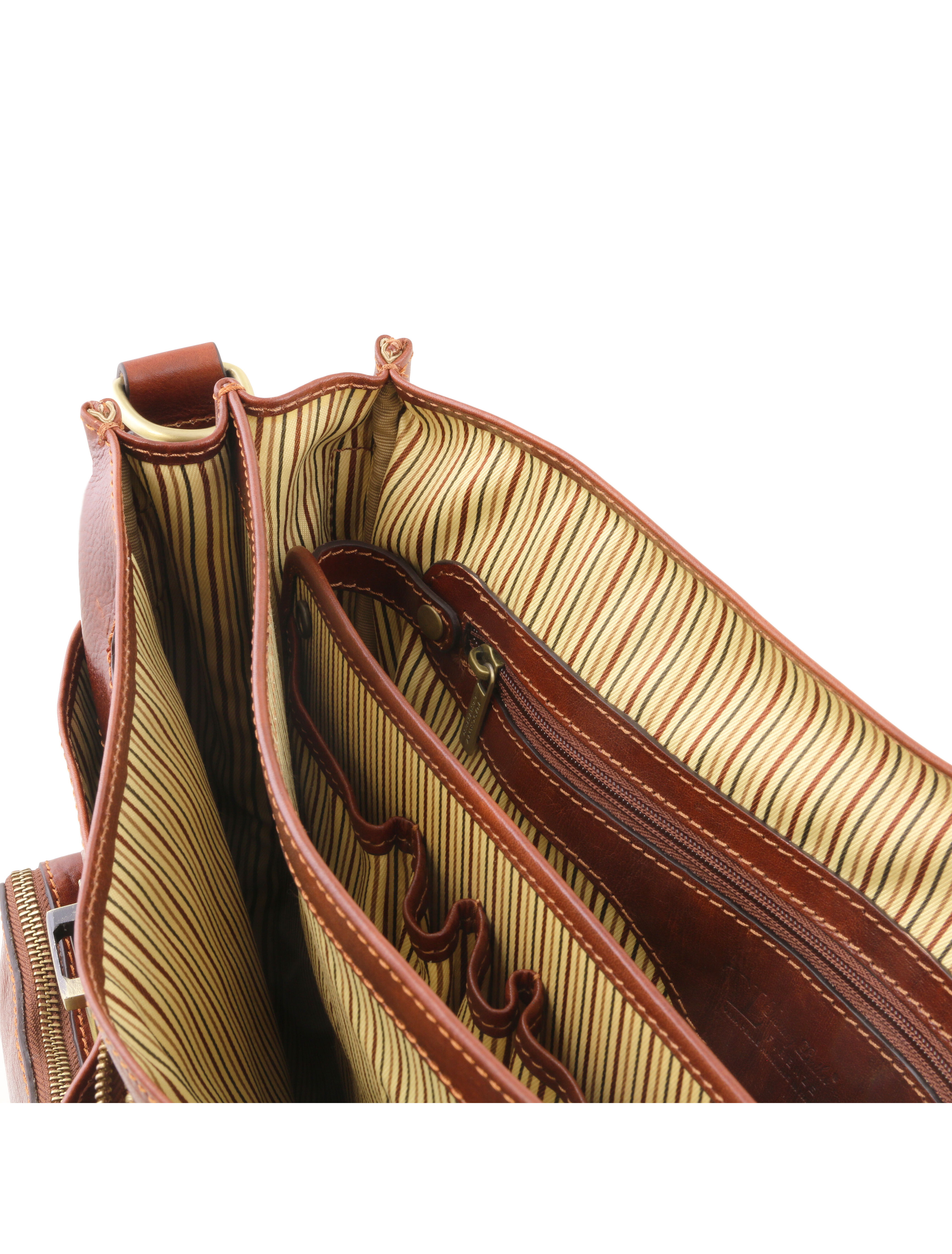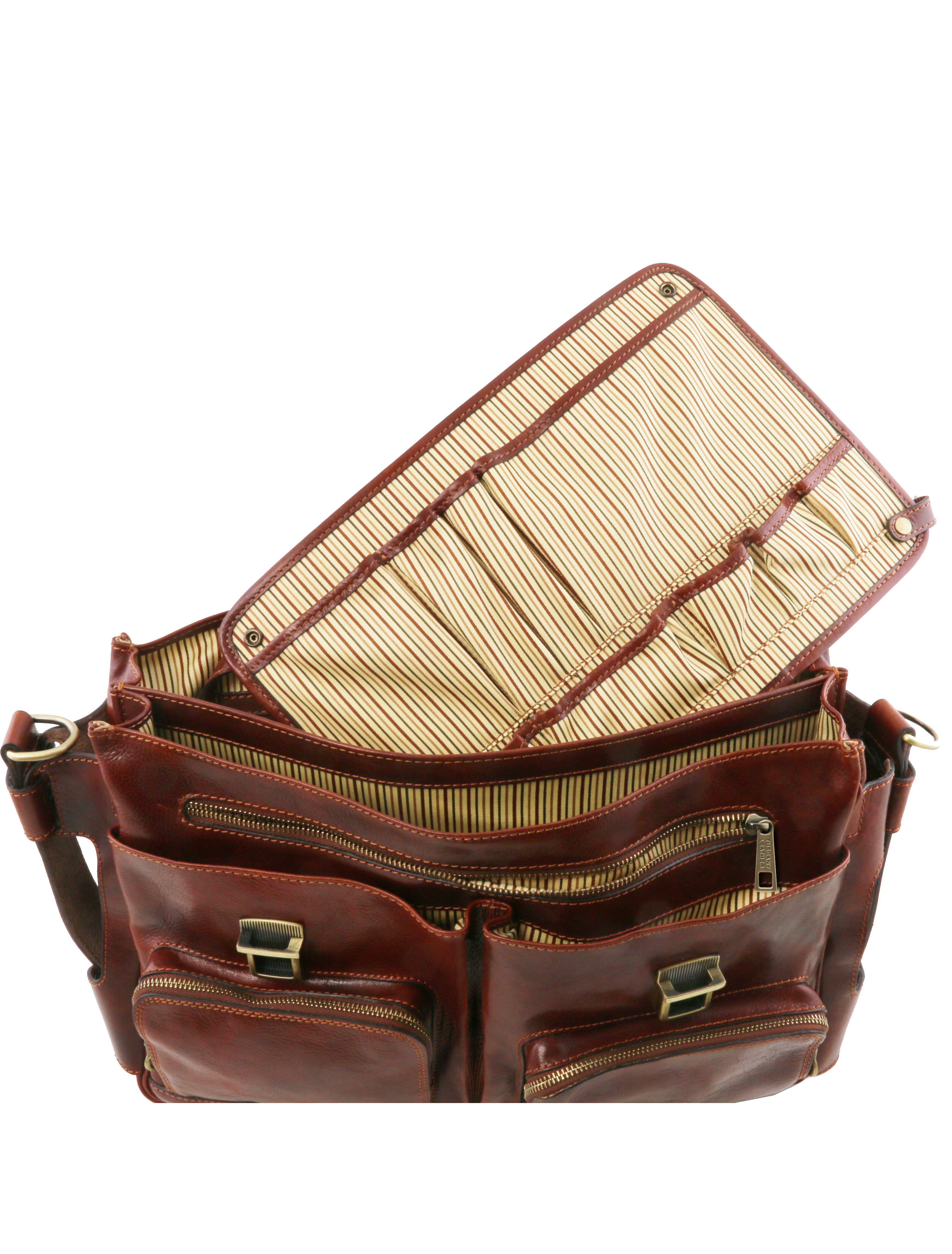 Alessandria Leather multi compartment TL SMART laptop briefcas...