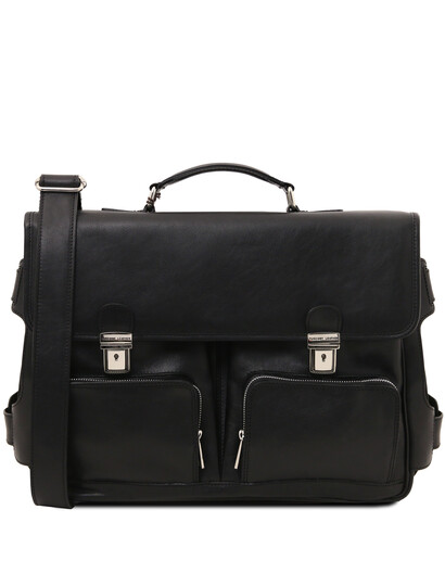 Ventimiglia Leather multi compartment TL SMART briefcase with front pockets Black