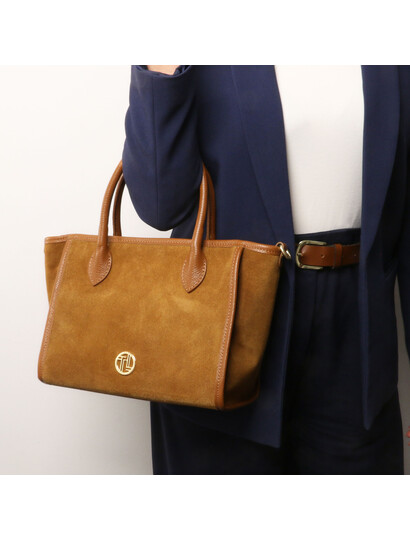 Glacette Suede leather bucket bag Cognac